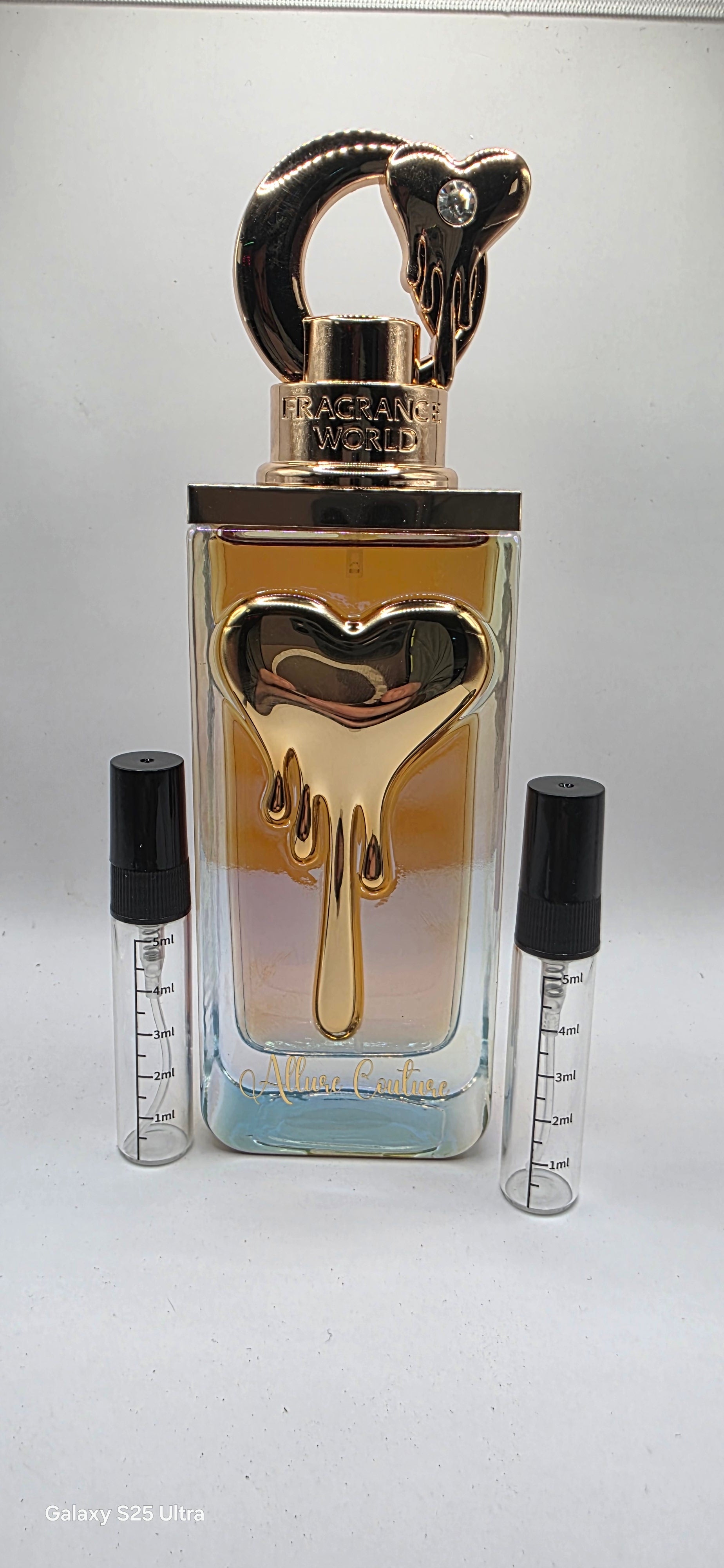 ALLURE COUTURE by Fragrance World is a Floral Fruity fragrance for women. This is a new fragrance. ALLURE COUTURE was launched in 2025. Top note is Candied Lemon; middle notes are Orange Blossom and Panacotta; base notes are Vanilla and Rum.
