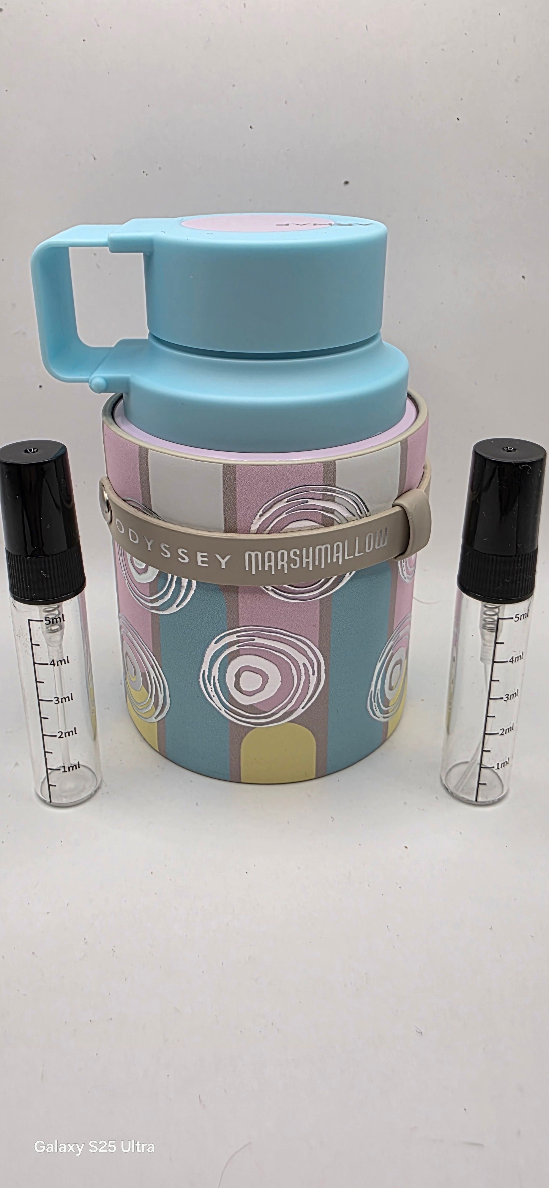 Odyssey Marshmallow by Armaf is a Floral Fruity Gourmand fragrance for women and men. This is a new fragrance. Odyssey Marshmallow was launched in 2025. Top notes are Coconut, Apple, Lemon, Lily of the Valley and Peony; middle notes are Marshmallow, Strawberry, Apricot, Peach, Raspberry and Orange Blossom; base notes are Mascarpone Cheese, Praline, Vanilla, Musk, Tonka Bean and Amber.