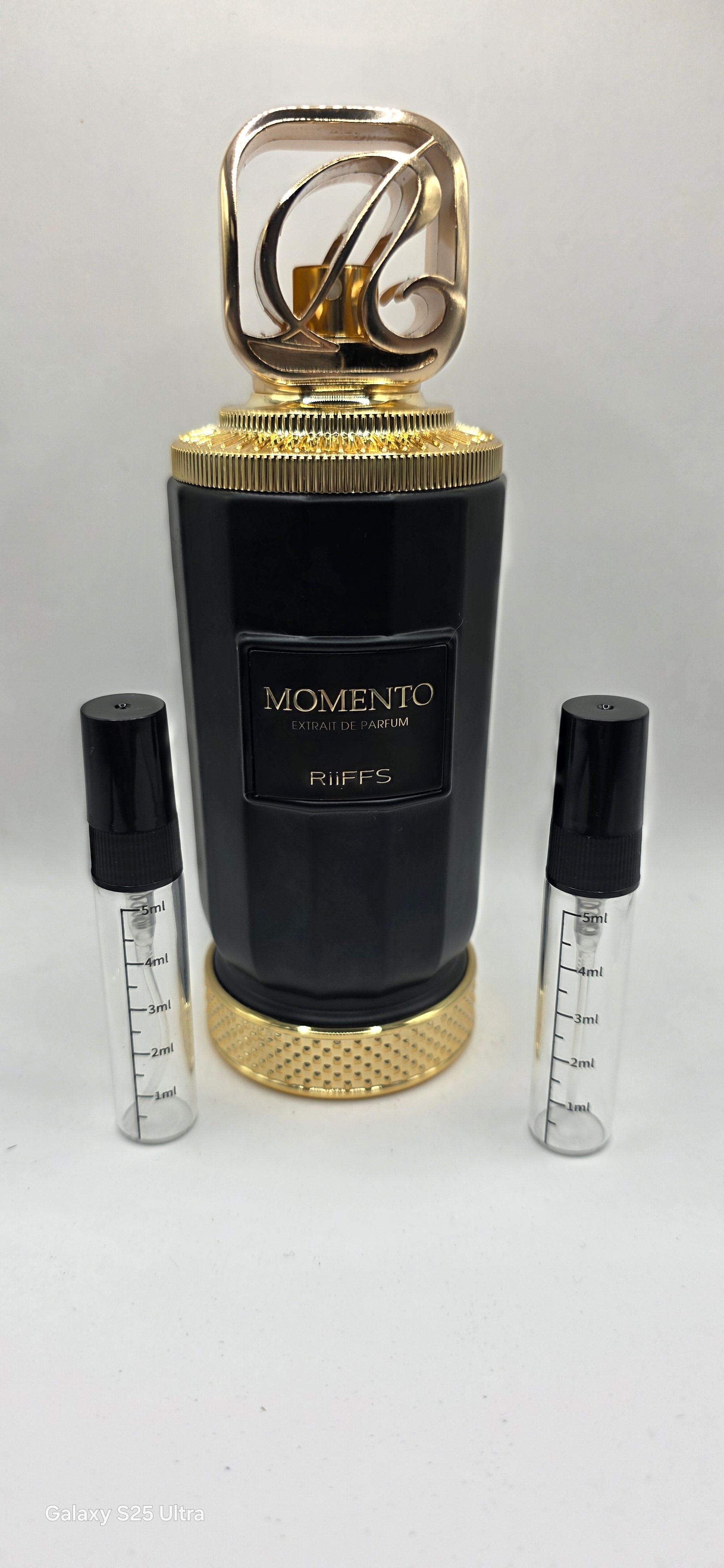 Momento by Riiffs Perfumes is a Woody Spicy fragrance for women and men. This is a new fragrance. Momento was launched in 2025. Top notes are Sugar, Saffron and Mandarin; middle notes are Tonka Bean, Damask Rose and Agarwood; base notes are Caramel, Amberwood and Cedar.